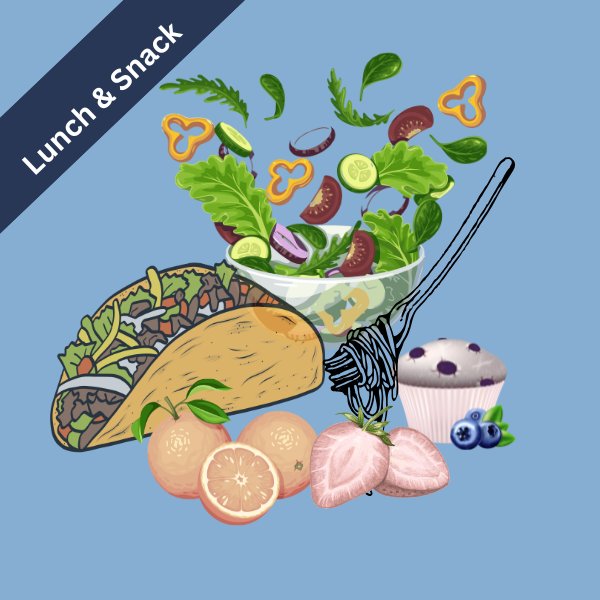 Lunch, AM, and PM snacks are available for purchase by the semester at $1,560 per day.