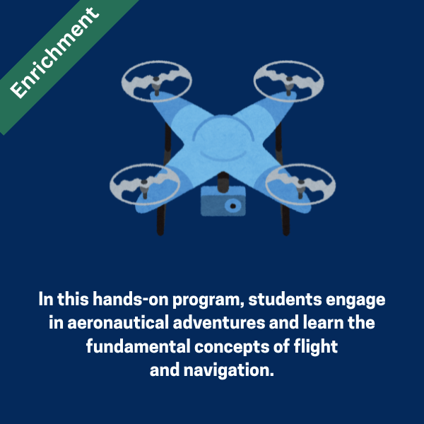 Through creative challenges and activities, students develop critical thinking skills while piloting their own drones and fostering a passion for STEAM. They’ll take their drones through trick flight shows, deliveries, and even rescue missions. Most excitedly, students will also get to keep their own Voyage Aeronautics Drone at the end of the course.