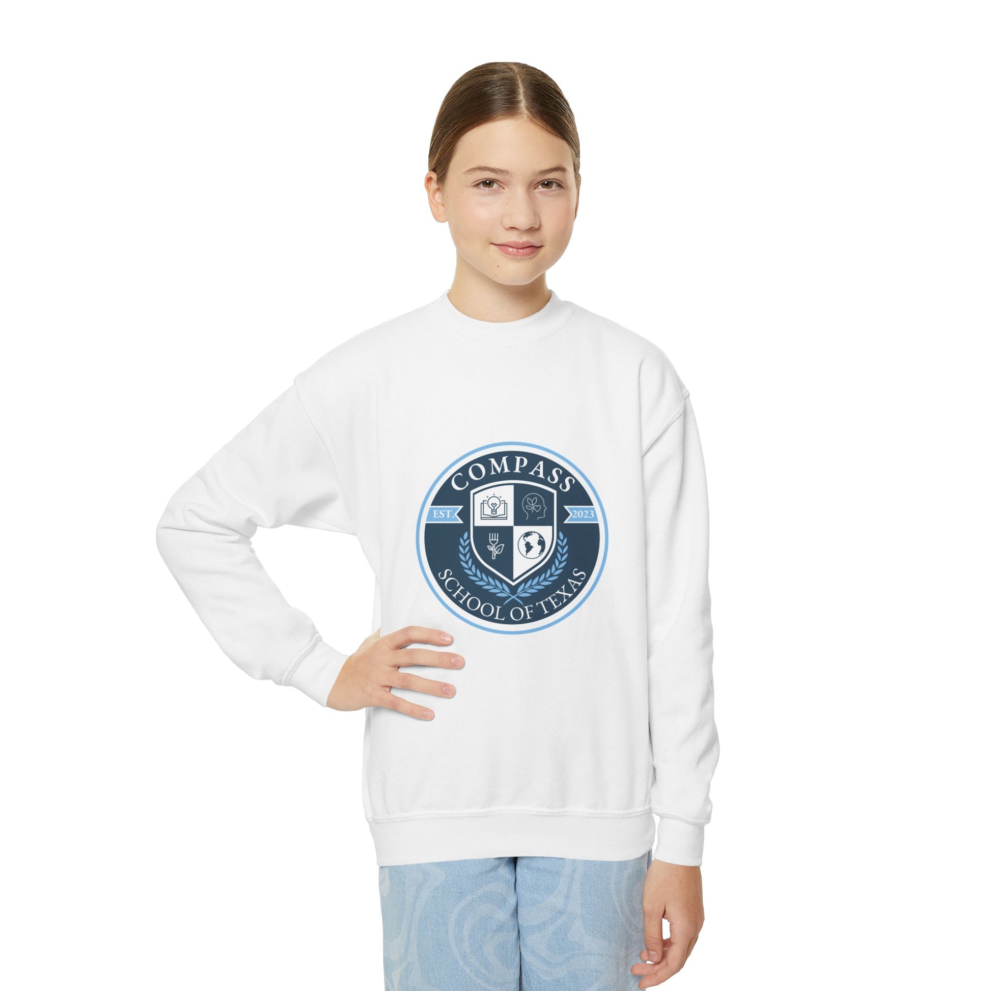 Youth Crewneck Sweatshirt - White Collegiate Logo Blue and White